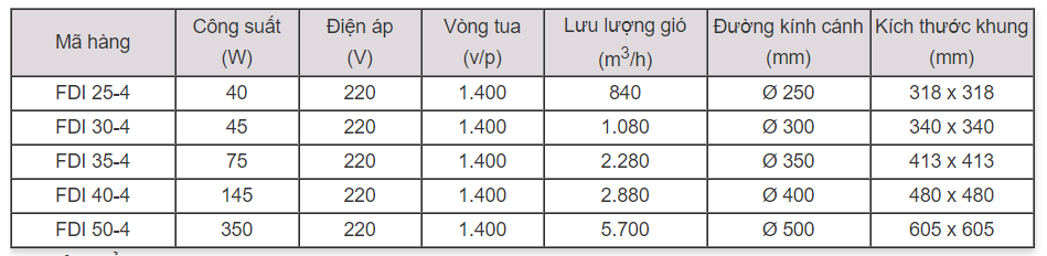 Thông số kỹ thuật sản phẩm Quạt thông gió vuông Inox Super Win FDI 25-4 và Các model cùng loại: